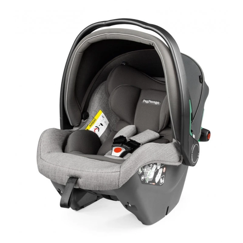 - S’accroche en un seul geste sur les poussettes Peg Perego et les poussettes d’autres marques avec des adaptateurs spéciaux (en option)