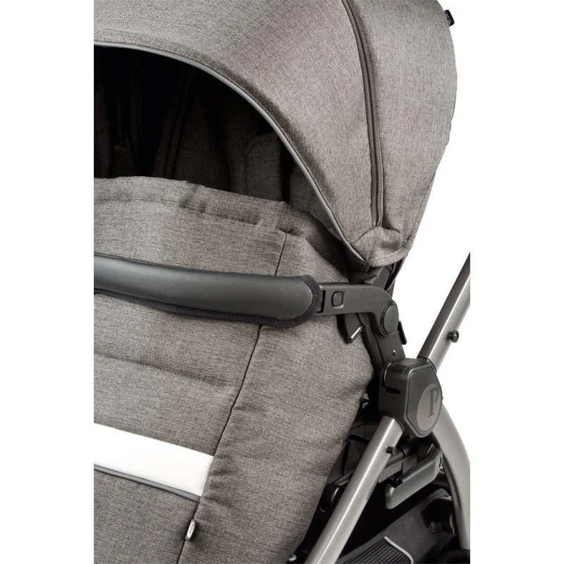 L’élégante anse de transport intégrée en similicuir est brevetée par Peg Perego. Vous pouvez abaisser la capote d’une seule main, même lorsque vous portez votre bébé dans vos bras.