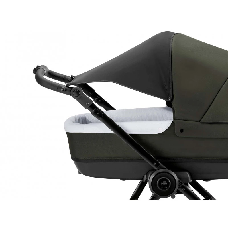 La belle nacelle Cam, spacieuse et confortable vient compléter ce beau trio ! Elle se transforme en landau lorsqu’elle est fixée sur le châssis. Elle est très utile lors des longues promenades ou à la maison comme petit couffin d’appoint grâce à son fond inclinable qui est également aéré pour garantir une température idéale.