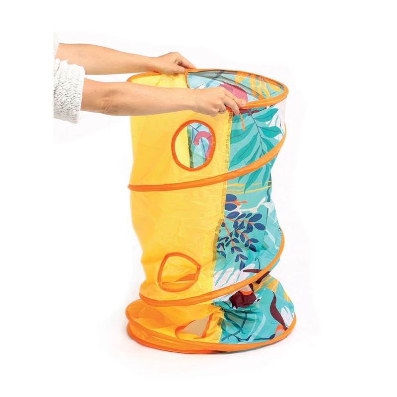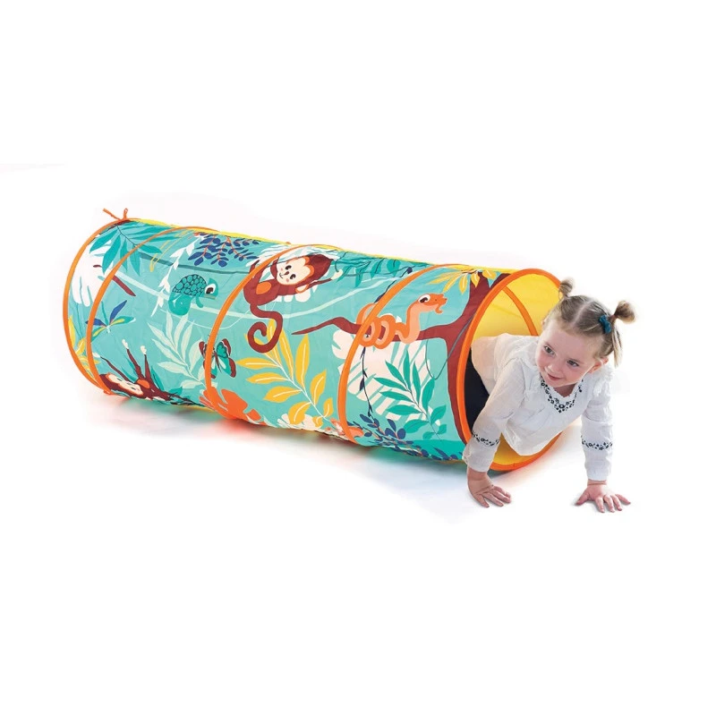 Les enfants adorent ramper, se cacher, se créer des cabanes, s’inventer de folles aventures, imaginer les situations les plus extravagantes… Offrez-leur l’occasion de satisfaire ce besoin d’expression et d’évasion grâce à ce tunnel de jeu imaginé par LUDI. Il est joyeusement coloré, illustré d’un superbe paysage de jungle où évoluent de ravissants animaux, et il mesure 1,2 m de long pour 42 cm de diamètre. Impossible de ne pas être tenté de se faufiler à l’intérieur !